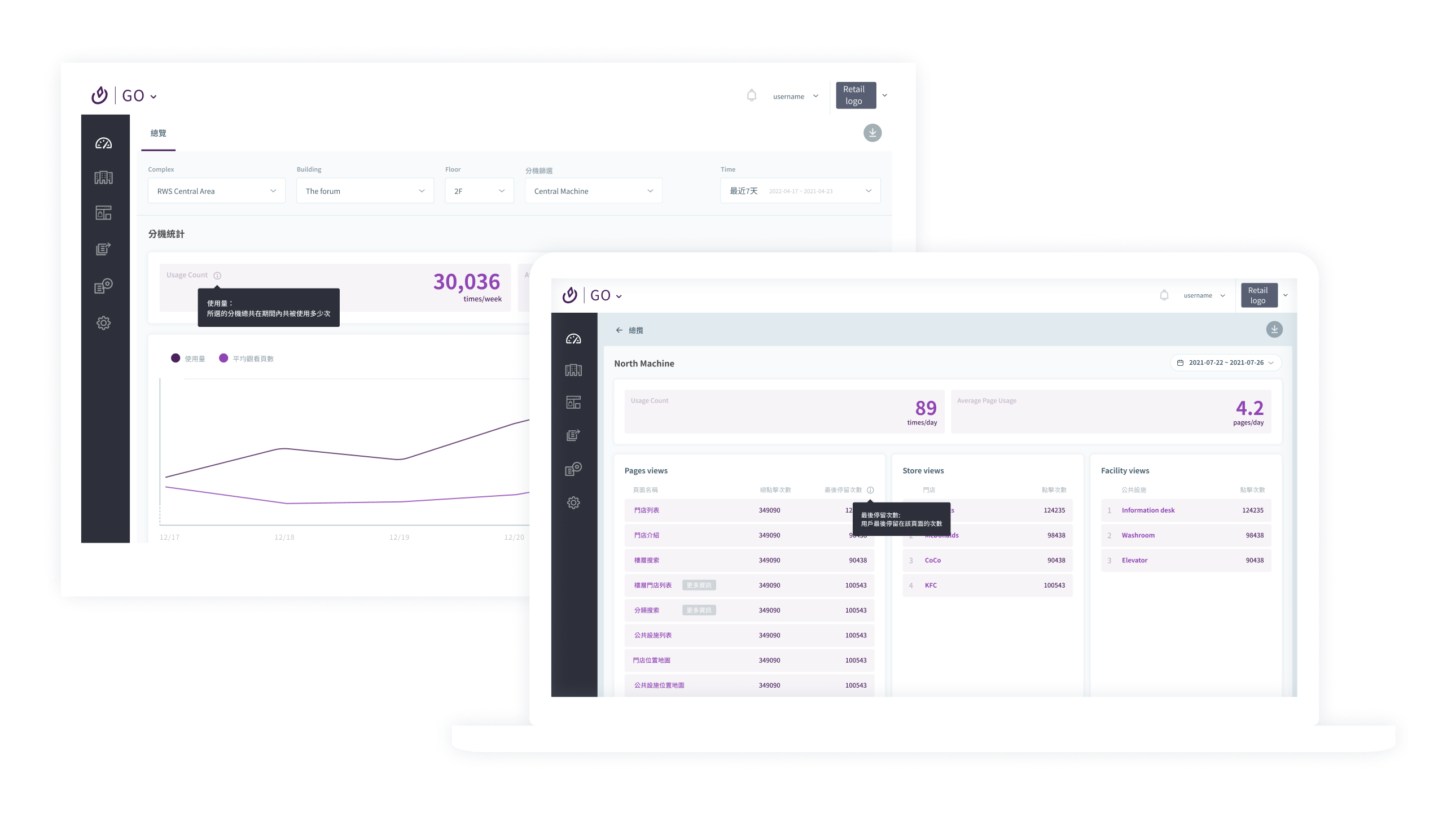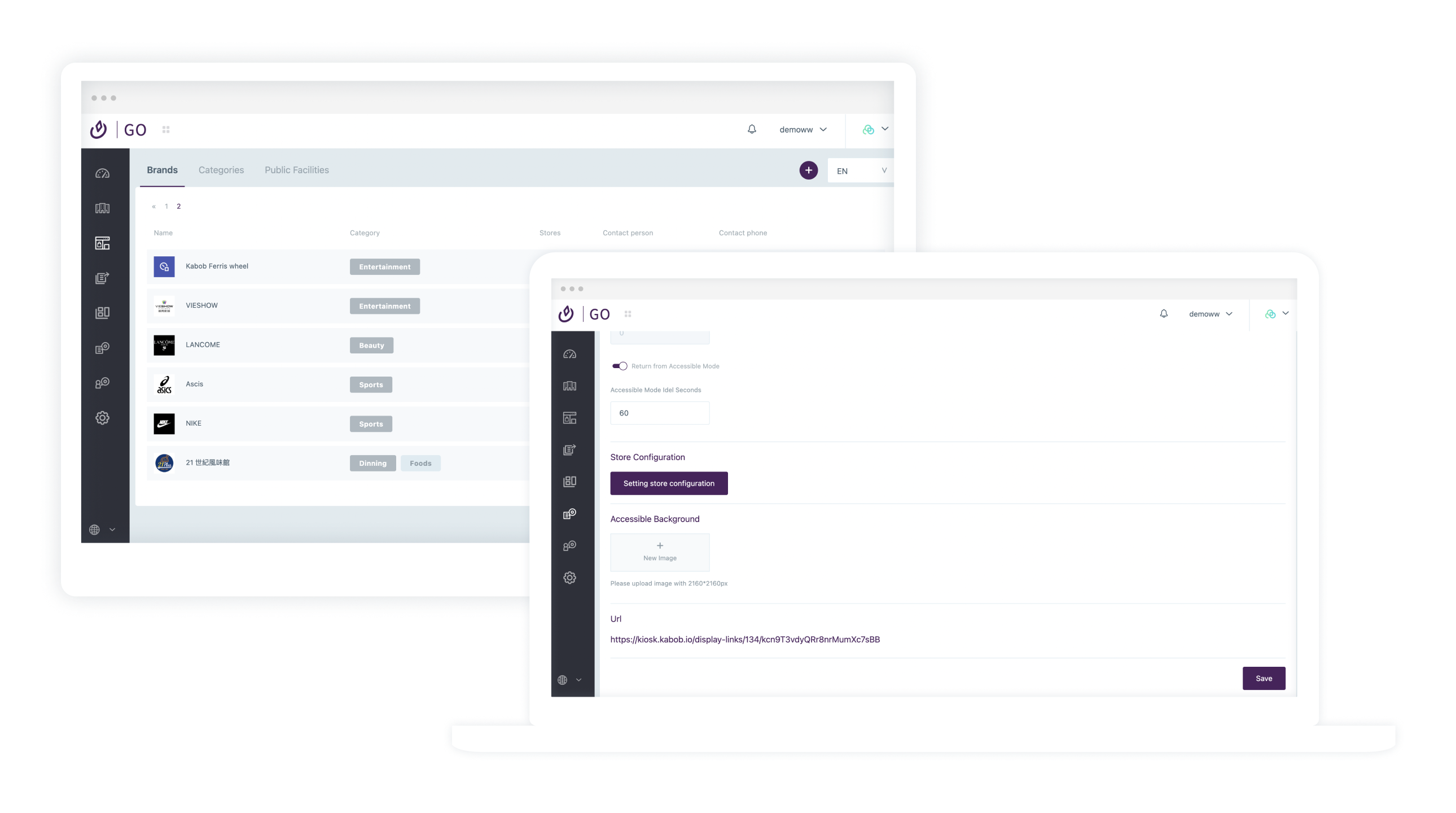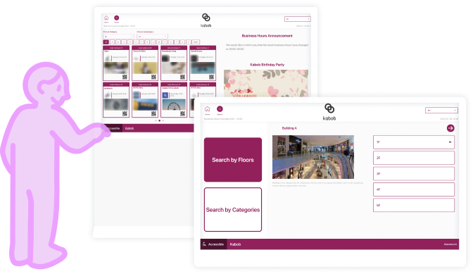 Backstage and floor touch navigation templates that provide information for department stores, sports centers, etc., and use Lookr to publish content on touch screens / tablets to improve consumer interaction.
