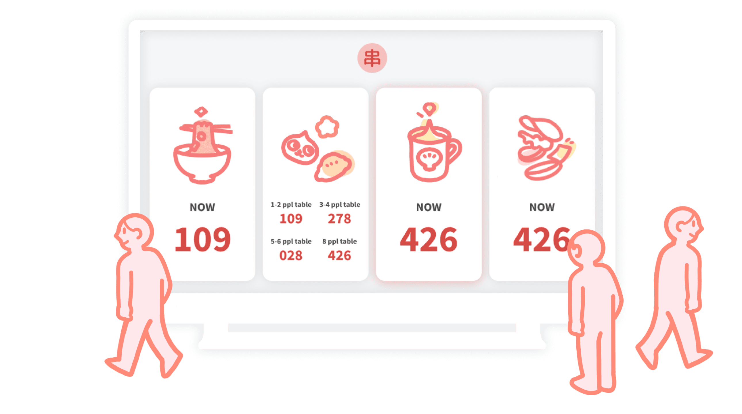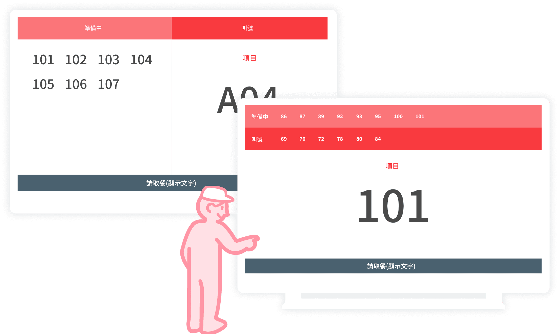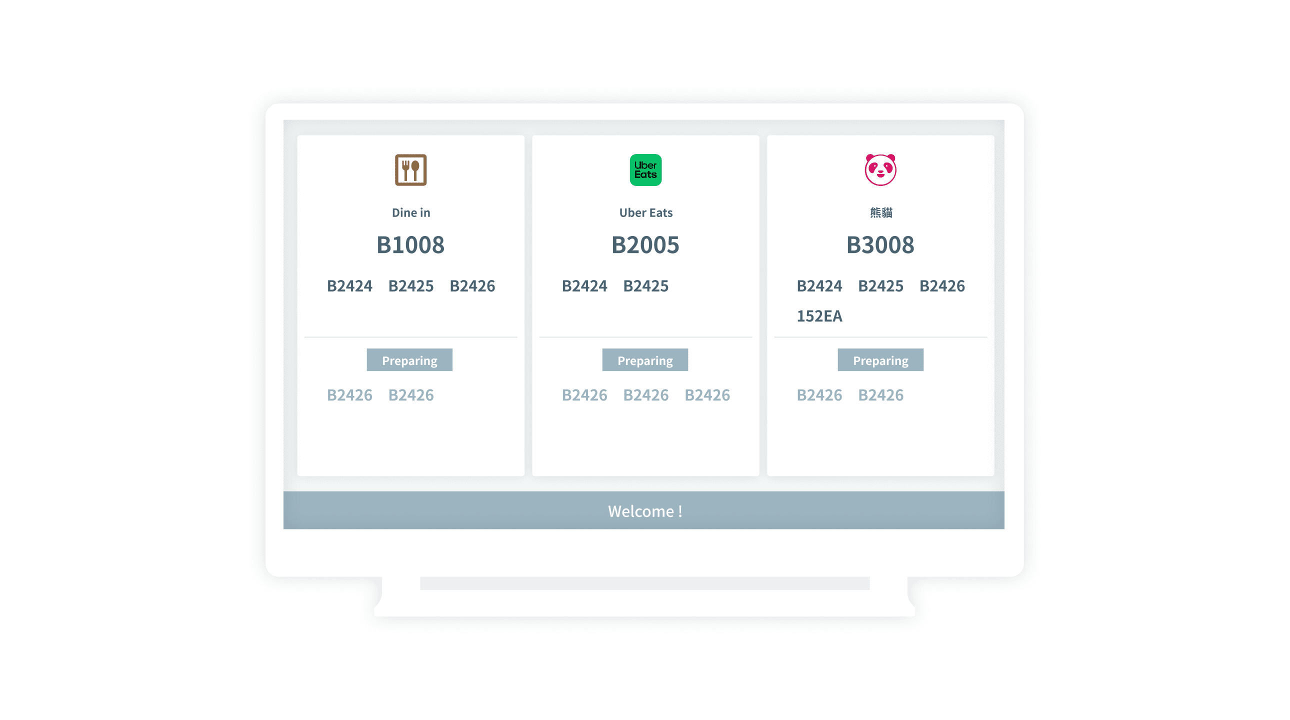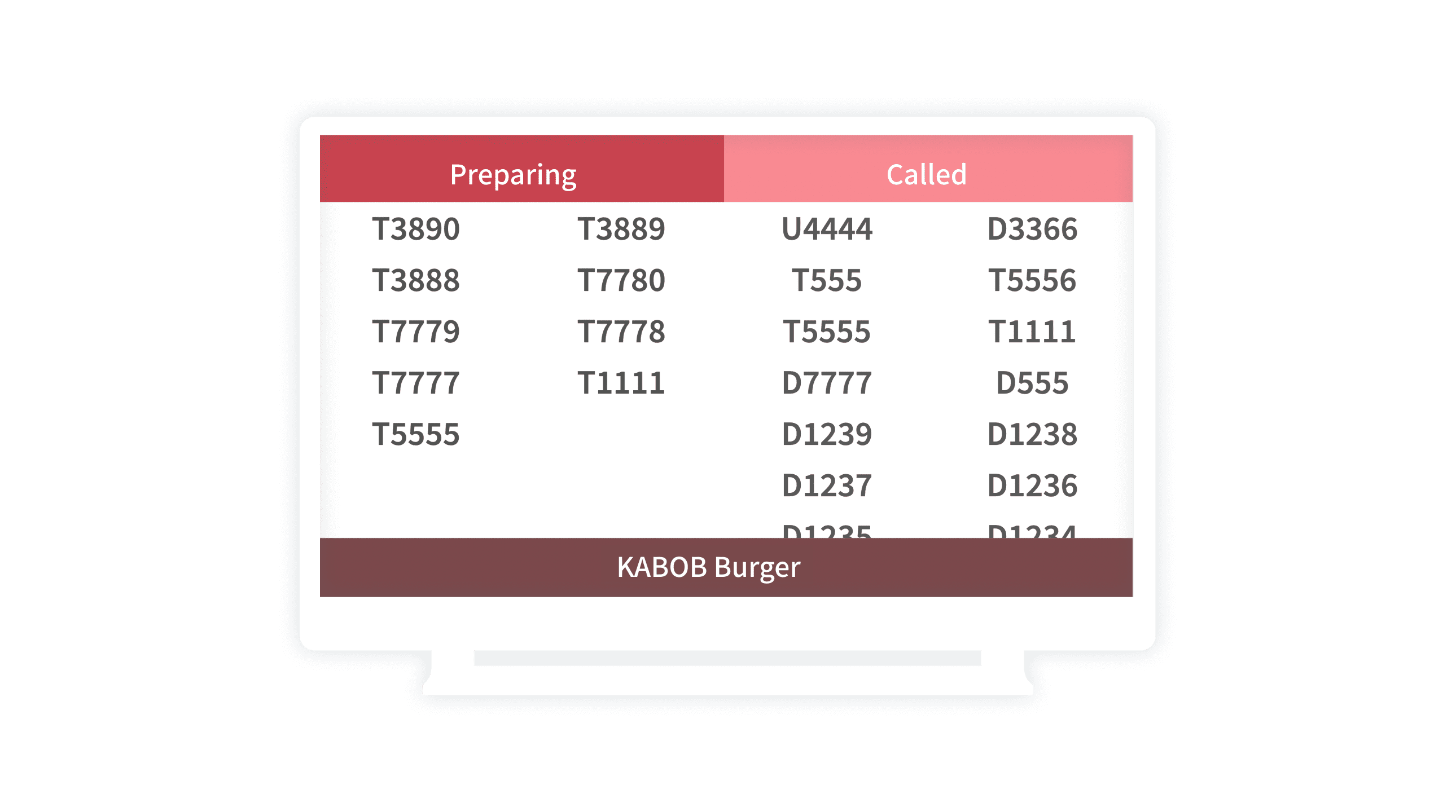 e. Food court/Multi-dining Stall Calling Scenario - Display the situation of multi-store calling on the lobby screen